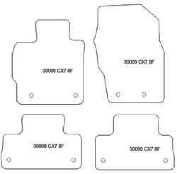 | Composition set | 2 tapis avant et 2 tapis arriere |